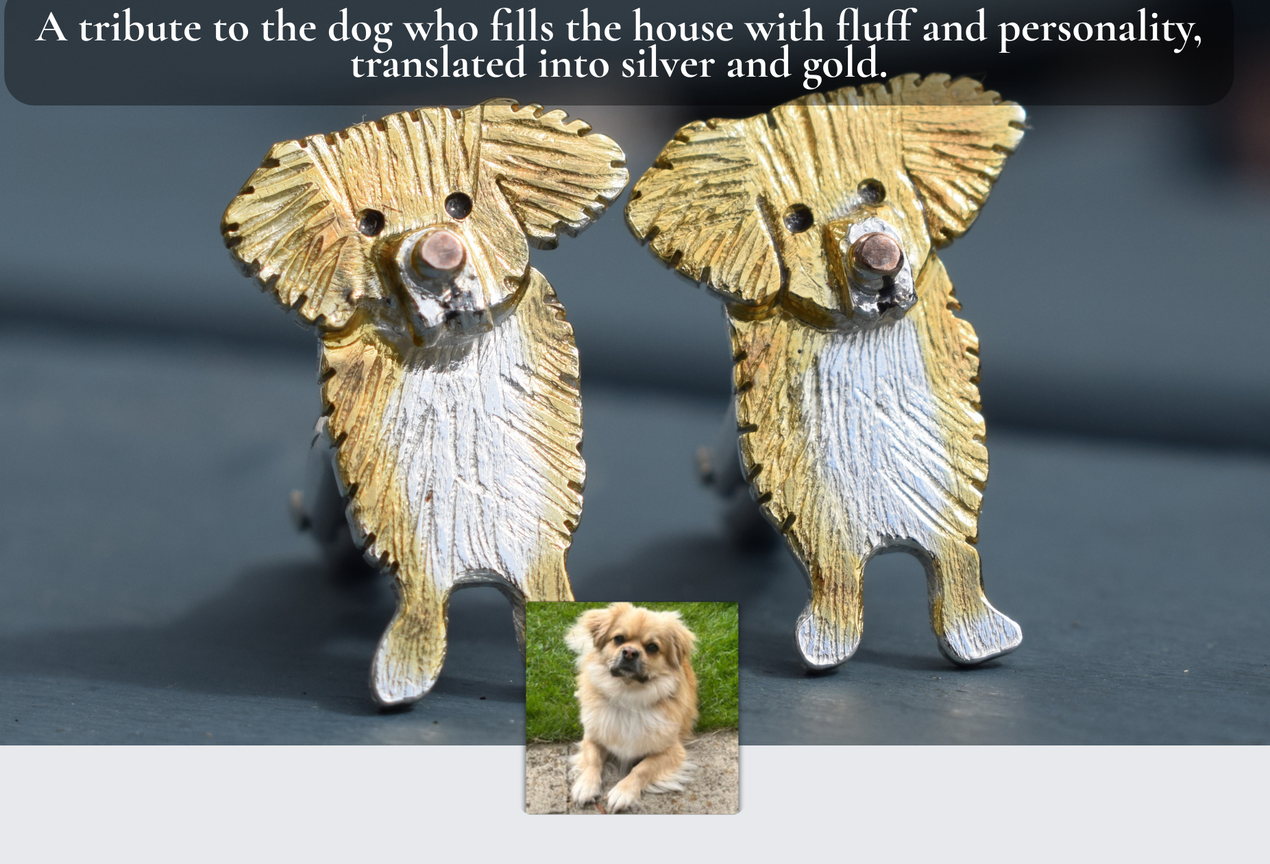 This one was a pair of silver and 22ct gold cufflinks inspired by a tiny, wonderfully fluffy dog called Buxton.
