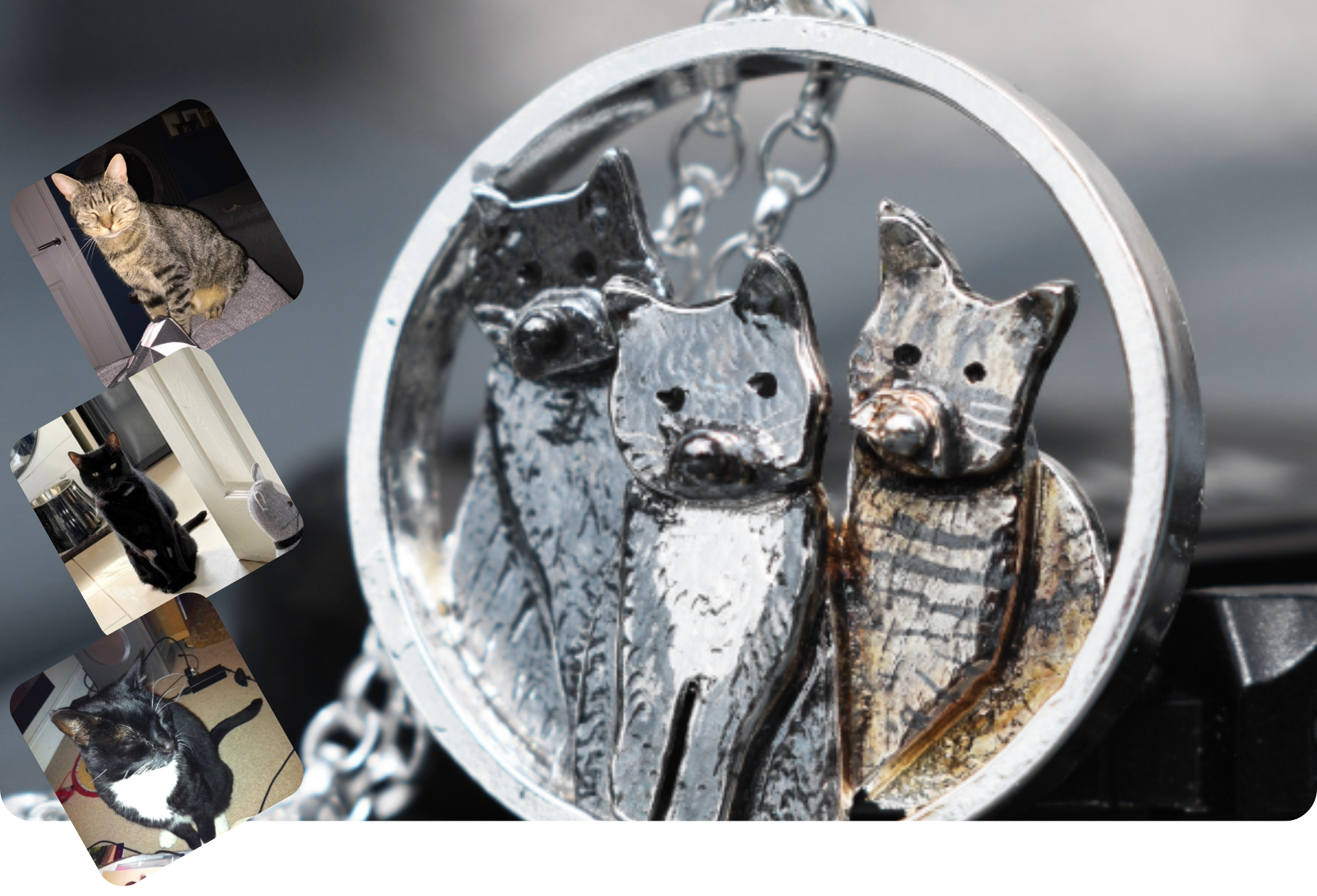 Some commissions stay with me long after I’ve sent them out, and one that I’ll always remember was from a gentleman called David. He wanted a necklace for his wife that celebrated three very special cats: Spencer, Tigger, and Blue.