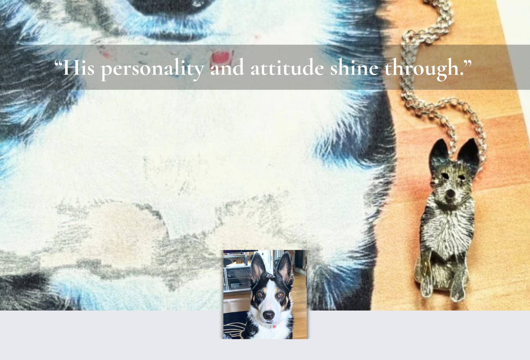 “My necklace has just been delivered. I wanted to write and thank you as you’ve captured him perfectly.