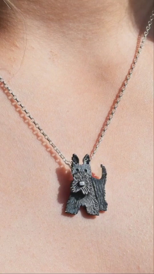 - Artistic Scottish Terrier theme: Oxidised sterling silver necklaces features a Scottish Terrier dog with it's distinctive expression. This is a perfect Scottish Terrier dog gift for the woman who loves this dog breed.
