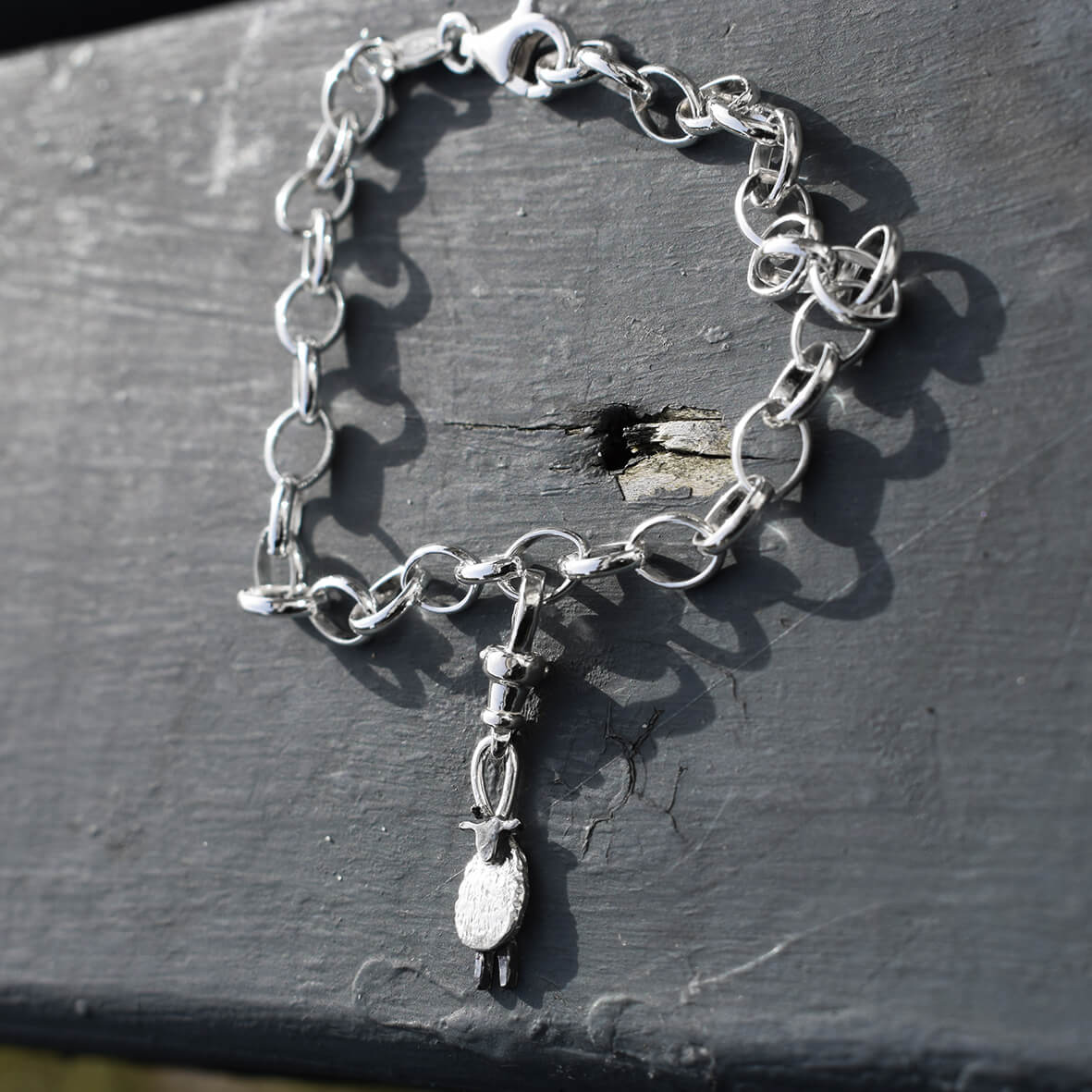 Our experienced silversmiths have designed the perfect sheep gift for her in the shape of this sterling silver sheep charm and bracelet.